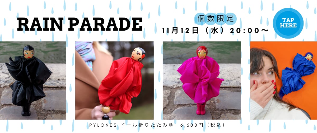 Pylonesの人気デザインが折りたたみ傘になって登場です! 片手で開けるワンタッチ式♪ ちょっと面倒な雨の日も楽しく出かけられそうな傘です。 骨組みは軽くて丈夫なグラスファイバー製です。 同じデザインのケースもセットで持ち歩きも安心です。 ▼△▼△▼△▼△▼△▼△▼△▼△▼△▼ サイズ 閉じた時:290x40mm 広げた時:970mm 素材:プラスティック、ナイロン 重量:約320g *ラッピングについて https://www.petitcoquin.net/p/00007 ・−・−・−・−・−・−・−・−・−・−・−・ 完売している商品の再入荷通知について ・−・−・−・−・−・−・−・−・−・−・−・ ・LINE (https://page.line.me/petitcoquin?openQrModal=true) ・メール ([email protected]) ・画面下の「ショップに質問する」 より【商品名、柄、個数、お名前】をご明記の上、ご連絡くださいませ。