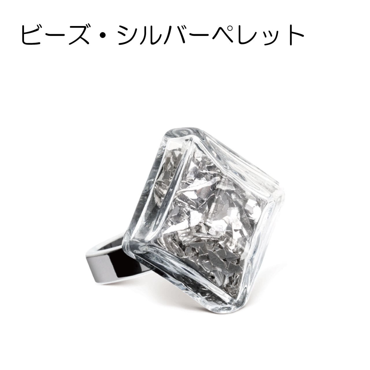 ガラスのモチーフの中に小さなビーズが詰まった可愛いデザインです。手元を見るたびにガラスの中でサラサラうごくビーズに癒されます♪コレクターも多いリングです。